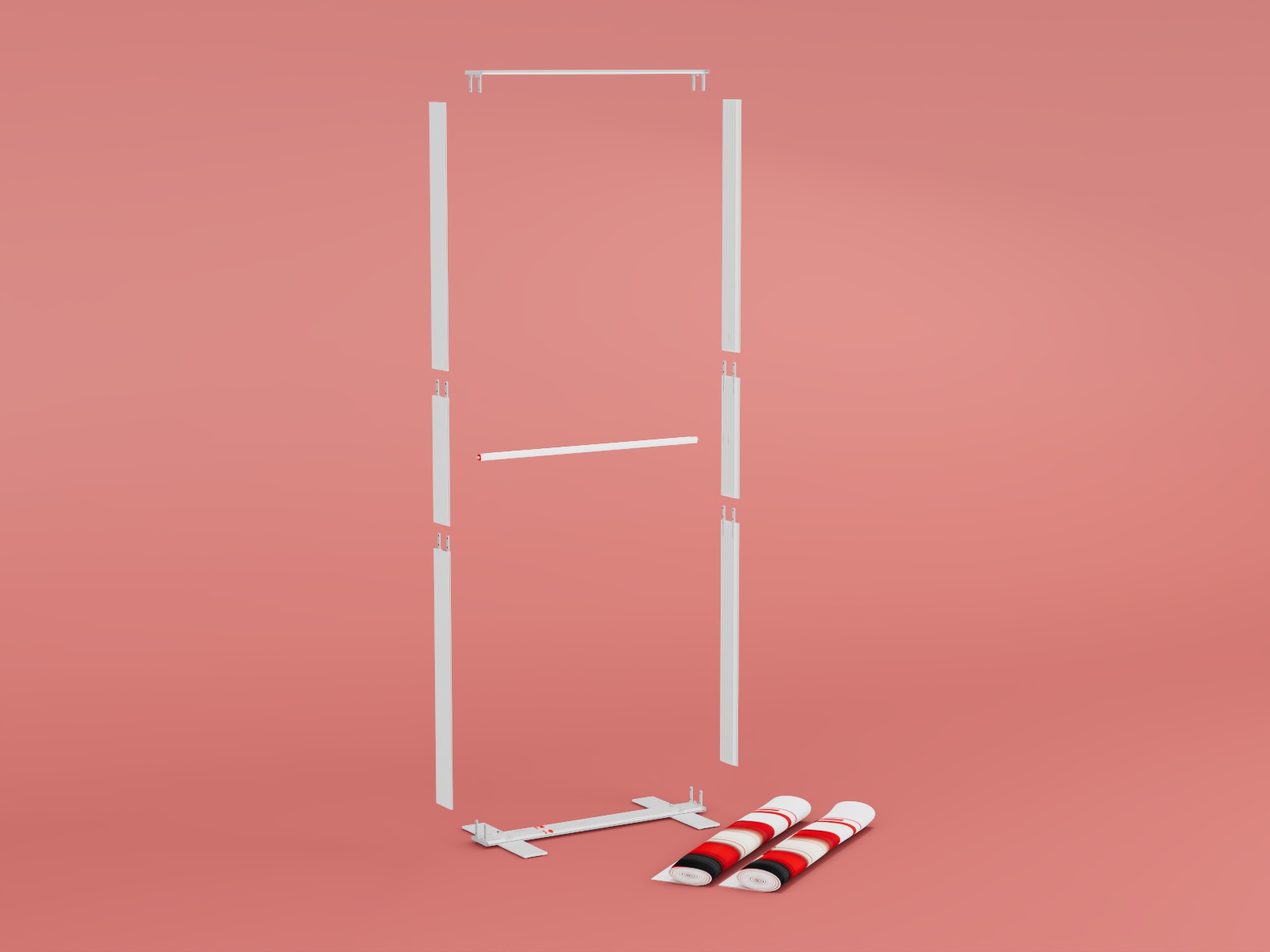 Entnehmen Sie die Teile einfach aus dem handlichen ABS-Koffer, stecken Sie diese zusammen, befestigen Sie die Standfüße – und schon ist das Display einsatzbereit. Die Digitaldrucke mit angenähten Silikonlippen lassen sich mühelos anbringen, leicht handhaben und jederzeit eigenständig austauschen.