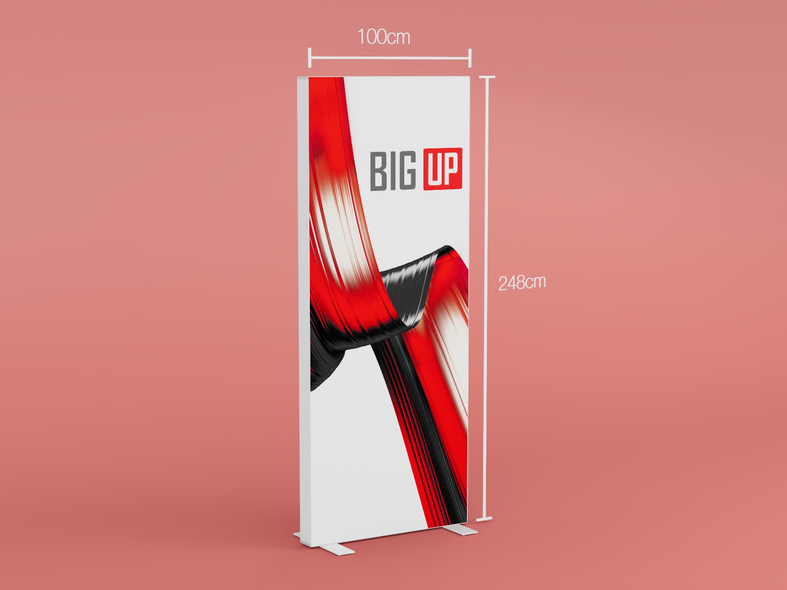 Verwenden Sie BIGUP frei stehend, als ein- oder doppelseitiges Display für alle Arten von Werbung. Es kann als Hintergrund, Raumteiler, im Showroom oder auf Messen genutzt werden. Ideal für Werbeaktionen, Veranstaltungen und vieles mehr.