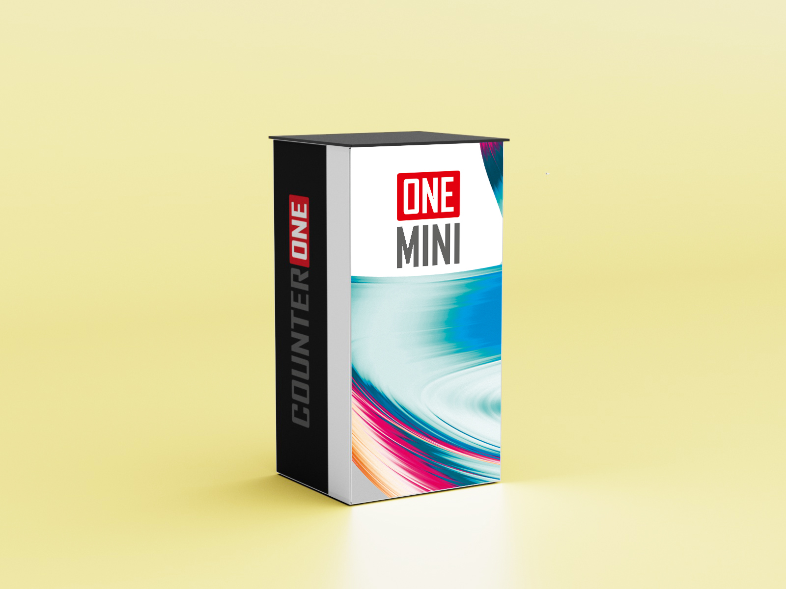 Der freistehende Counter One Mini ist eine perfekte Lösung für Ausstellungen, Messen, Promotions etc.