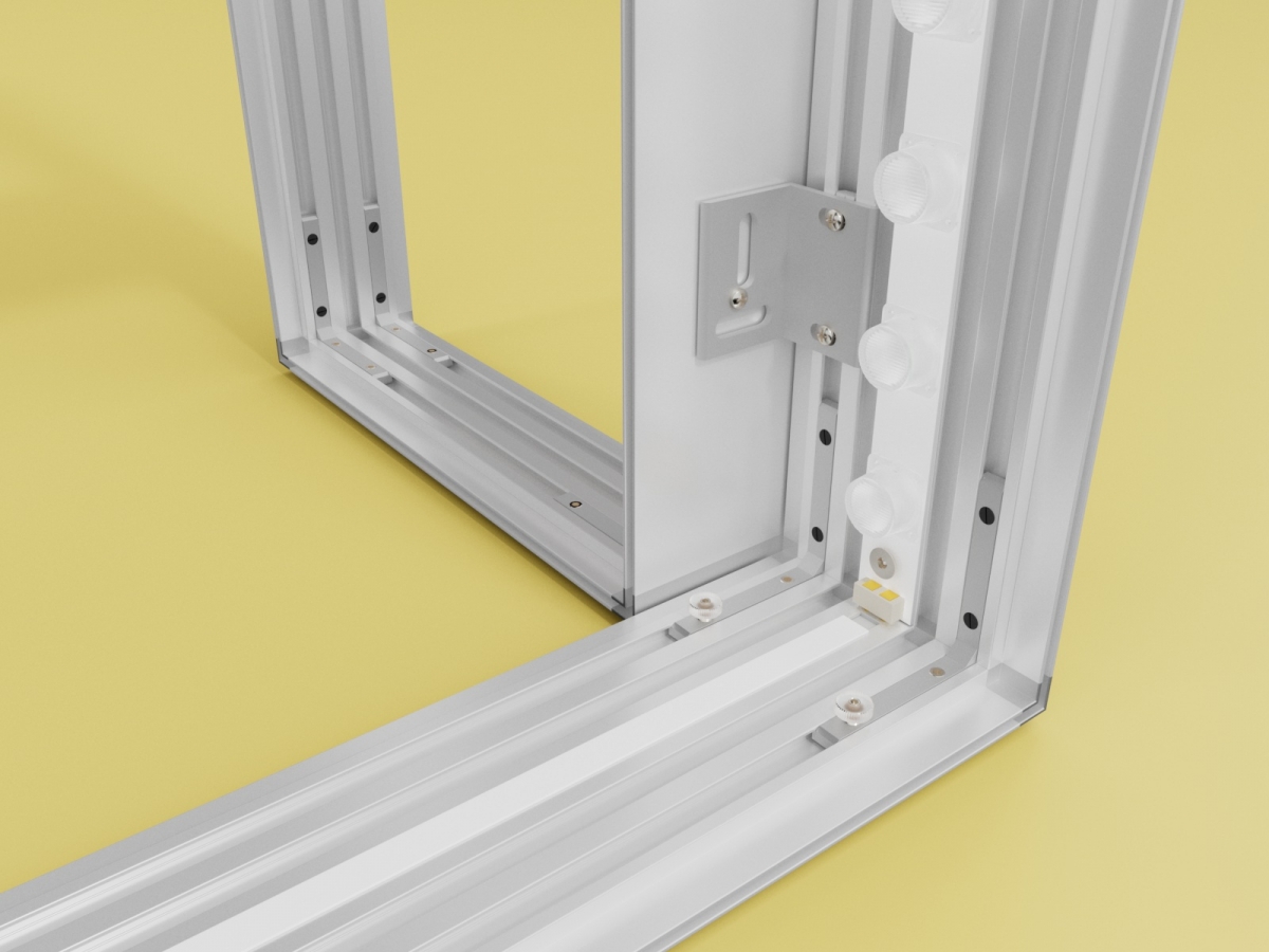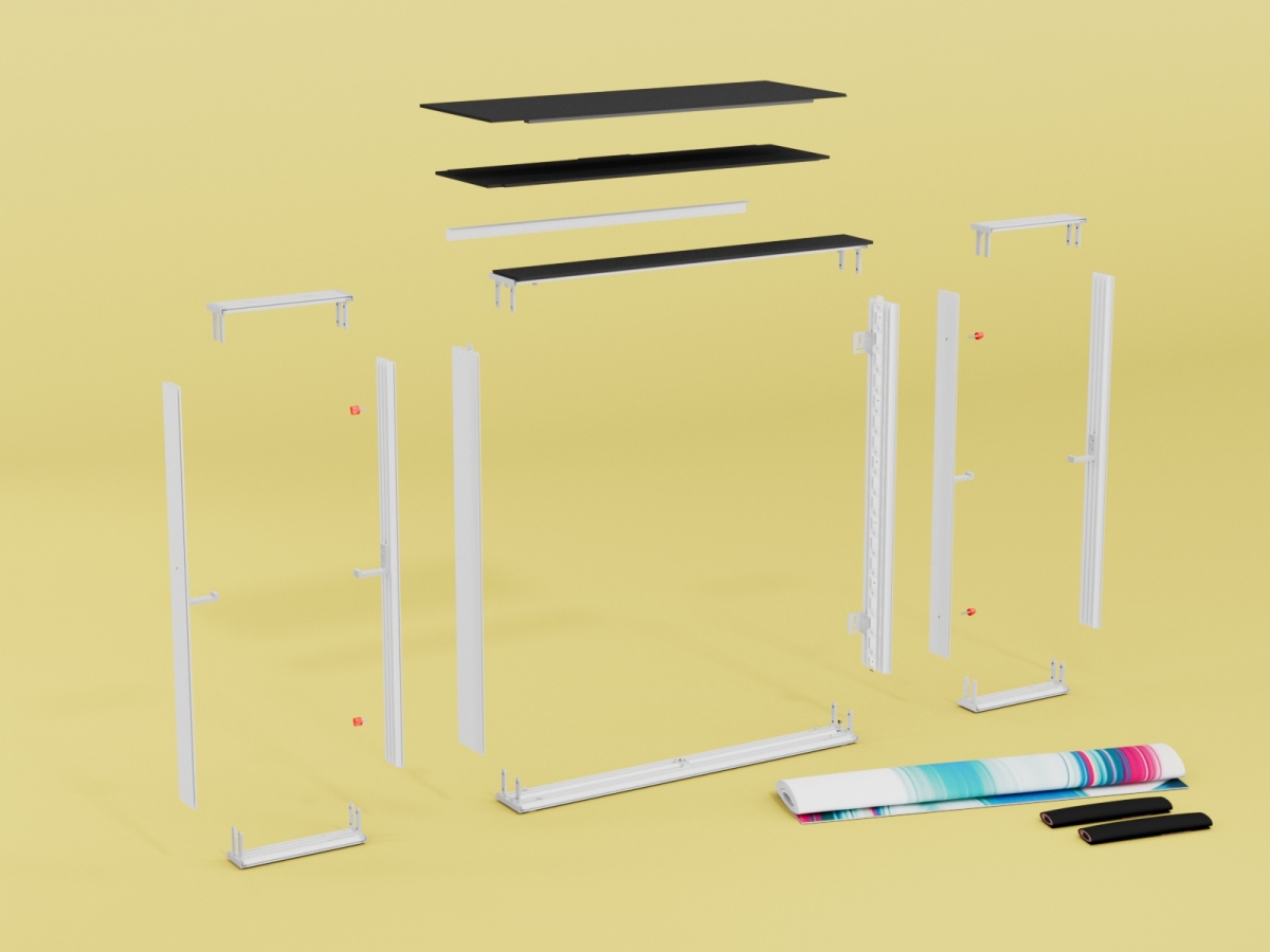 Diese Rahmen werden in Einzelteilen in einem ABS-Transportkoffer geliefert. Dies spart Transportkosten und Verpackungsmaterial. Einfach den Rahmen zusammenbauen, Treiber und Kabel anschließen – plug in und fertig.