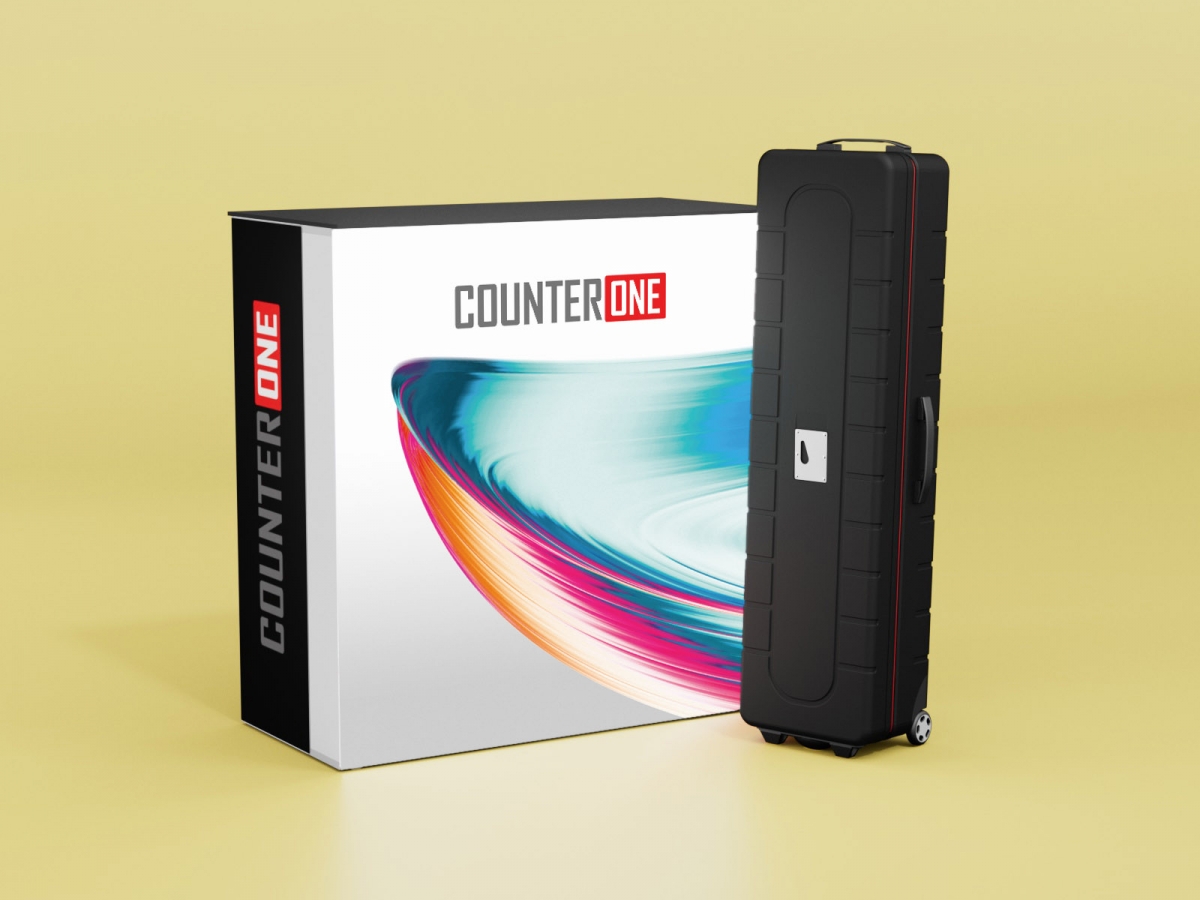 COUNTER ONE ist überraschend leicht und daher einfach zu transportieren. Er wird in einem robusten ABS-Transportkoffer geliefert, Maße: BxHxT 39 x 30 x 116 cm mit spezieller Schaumstoffauskleidung, Rollen und einem Griff.