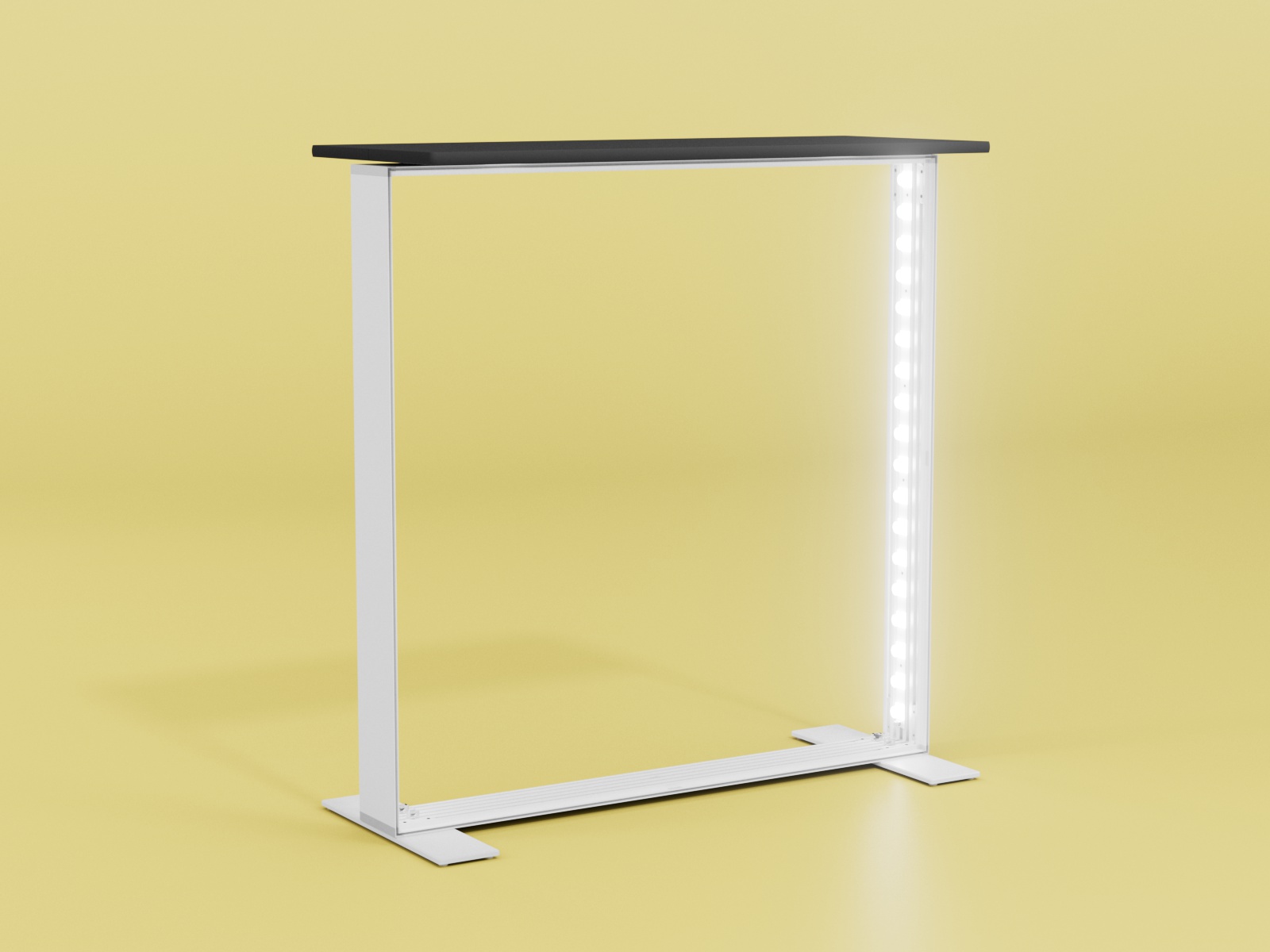 Dieses elegante System ist beidseitig beleuchtet, in wenigen Minuten aufgebaut und stabil genug, um Ihren Anforderungen gerecht zu werden. Auch hier ermöglicht unser patentiertes LEDUP-System den Aufbau ohne Werkzeug. Eine Gesamtstromaufnahme von 30 Watt rundet das Paket perfekt ab.