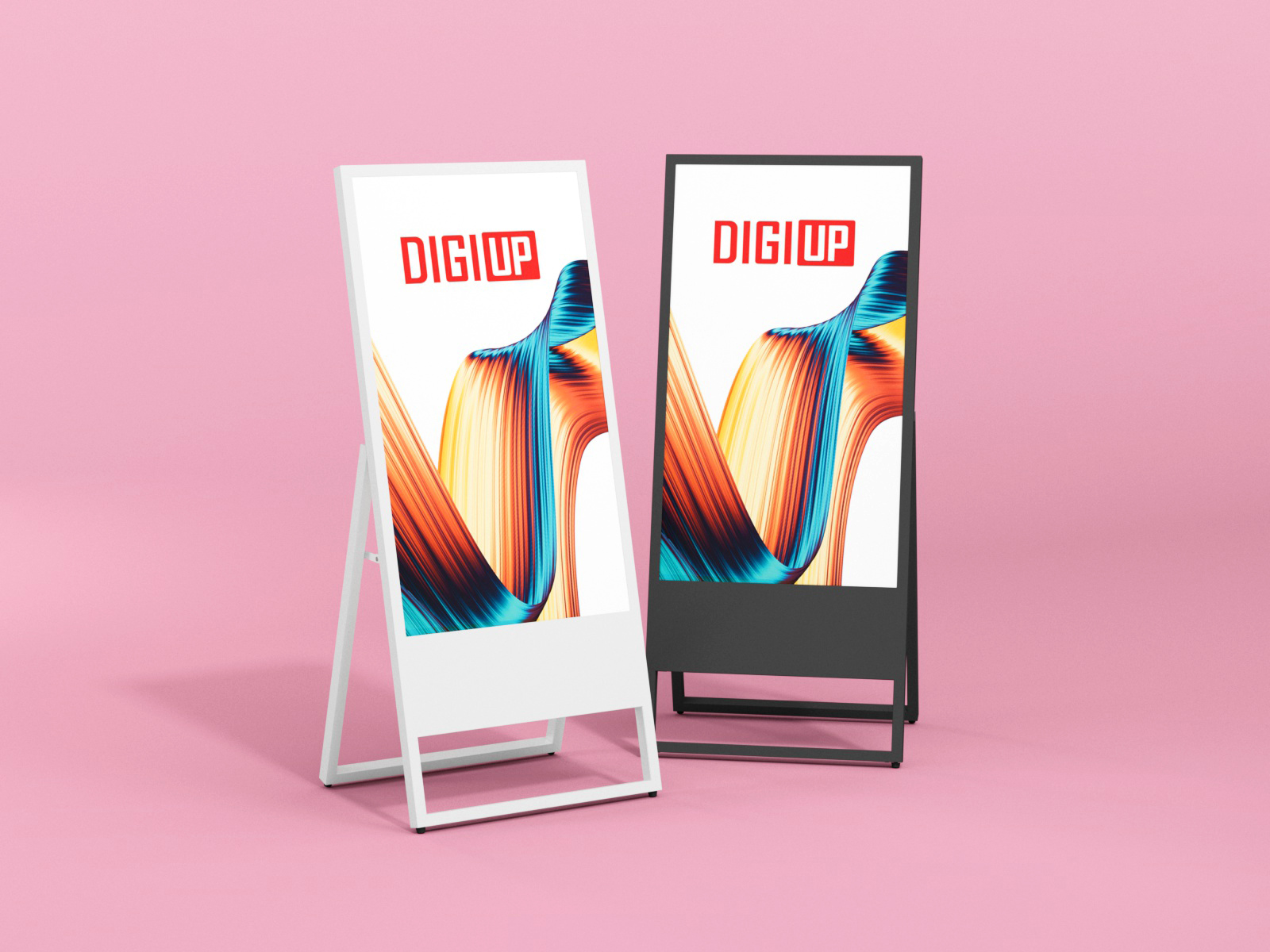 Der DIGIUP STAND ist ein vielseitiger Kundenstopper, der in verschiedenen Umgebungen eingesetzt werden kann. In Schaufenstern dient er als aufmerksamkeitsstarke Werbefläche, um Passanten anzusprechen und Produkte zu bewerben. In Einzelhandelsgeschäften hebt er spezielle Angebote und neue Produkte hervor, um den Umsatz zu steigern. In Restaurants kann der DIGIUP STAND als digitales Menü genutzt werden, um täglich wechselnde Gerichte oder Aktionen anzuzeigen. Bei Veranstaltungen und Messen vermittelt der Kundenstopper auf moderne Weise Informationen über Produkte und Dienstleistungen. Mit seinem schlanken, patentierten Metallgehäuse ist er leicht und dennoch stabil, was ihn mobil und vielseitig einsetzbar macht.
