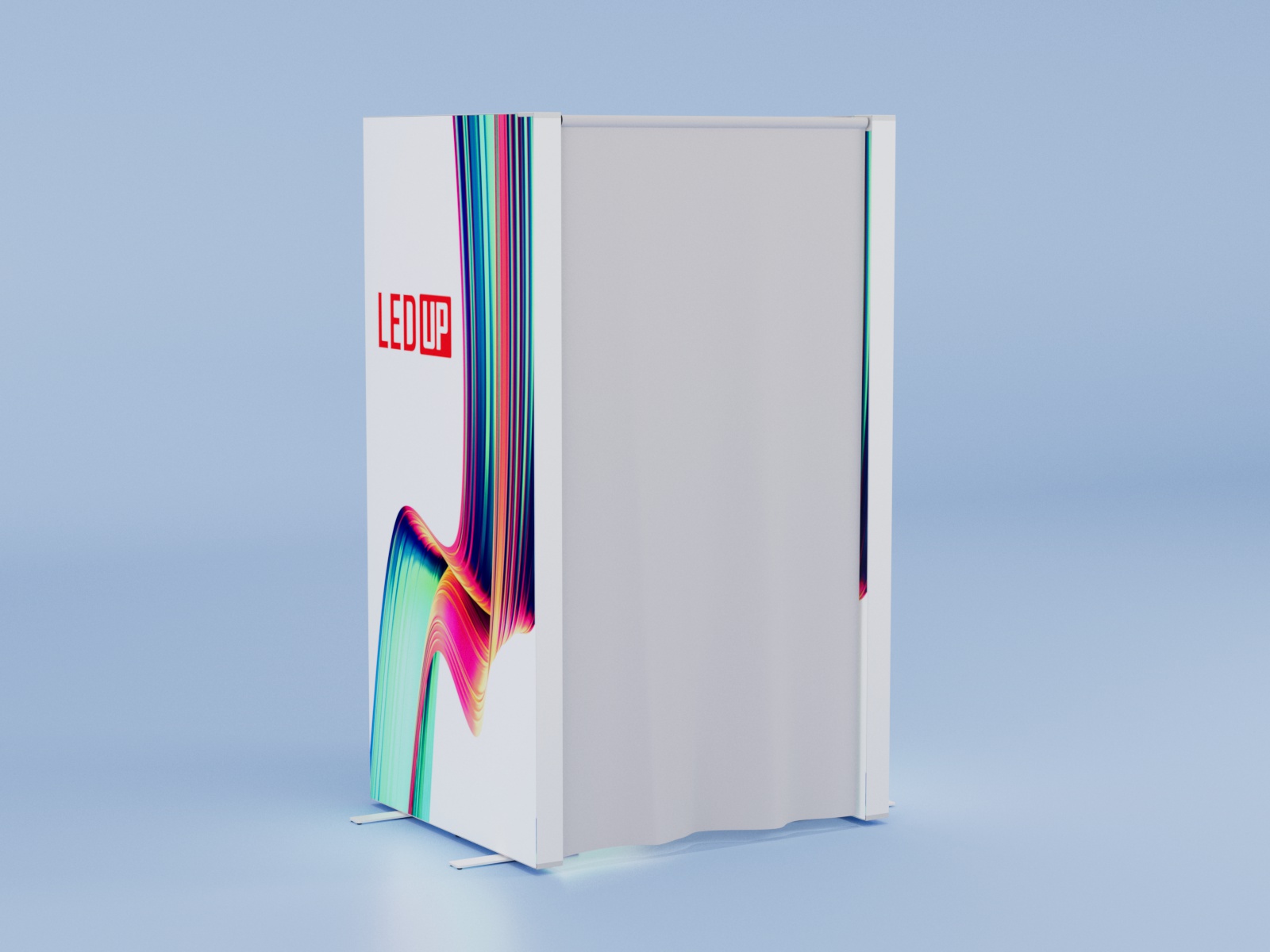 Der LEDUP® Vorhang ist das perfekte Zubehör, um auf Messen und Veranstaltungen schnell und einfach einen separaten Bereich zu schaffen. Der Vorhang lässt sich mühelos am LEDUP® Rahmen befestigen und bietet einen diskreten Bereich, um Gegenstände wie Inventar, persönliche Gegenstände oder technisches Equipment zu verstauen. So bleibt Ihr Stand ordentlich und professionell, während gleichzeitig funktionaler Stauraum geschaffen wird. Der Vorhang ist unbedruckt und in einer neutralen grauen Farbe erhältlich