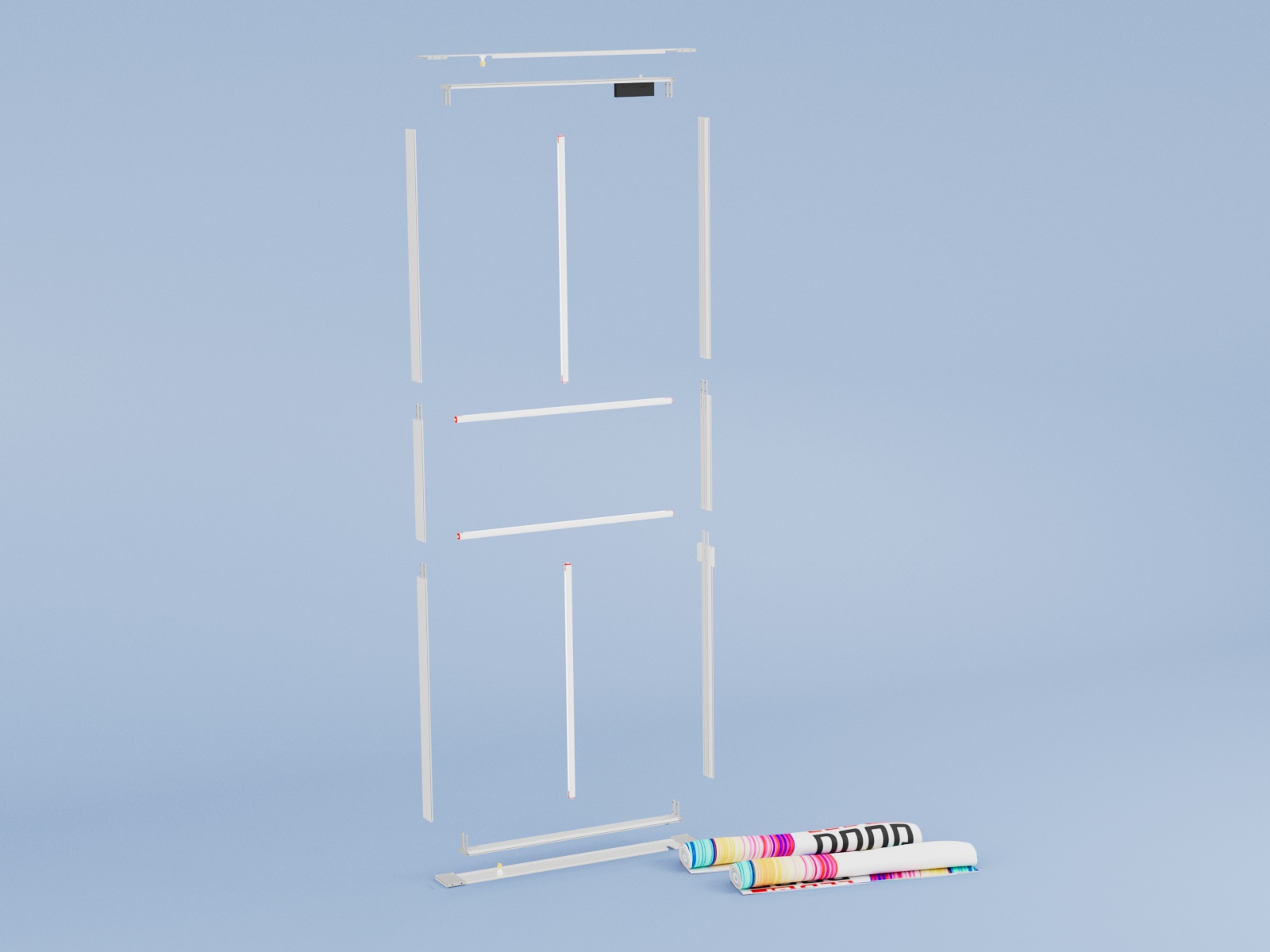 LEDUP® DOOR ist eine elegante Ergänzung für Ihren Raum, gefertigt aus silber eloxierten Aluminiumprofilen mit einer Tiefe von 80 mm und Aluminium-Gussverbindern. Sie ist in drei Standardrahmengrößen (98 x 200,4 cm, 98 x 230,4 cm, 98 x 245,4 cm) erhältlich und wiegt nur ca. 22,8 kg. Als Erweiterungssystem für LEDUP® erleichtert sie die Schaffung von Stauraum oder Messeständen in verschiedenen Konfigurationen.