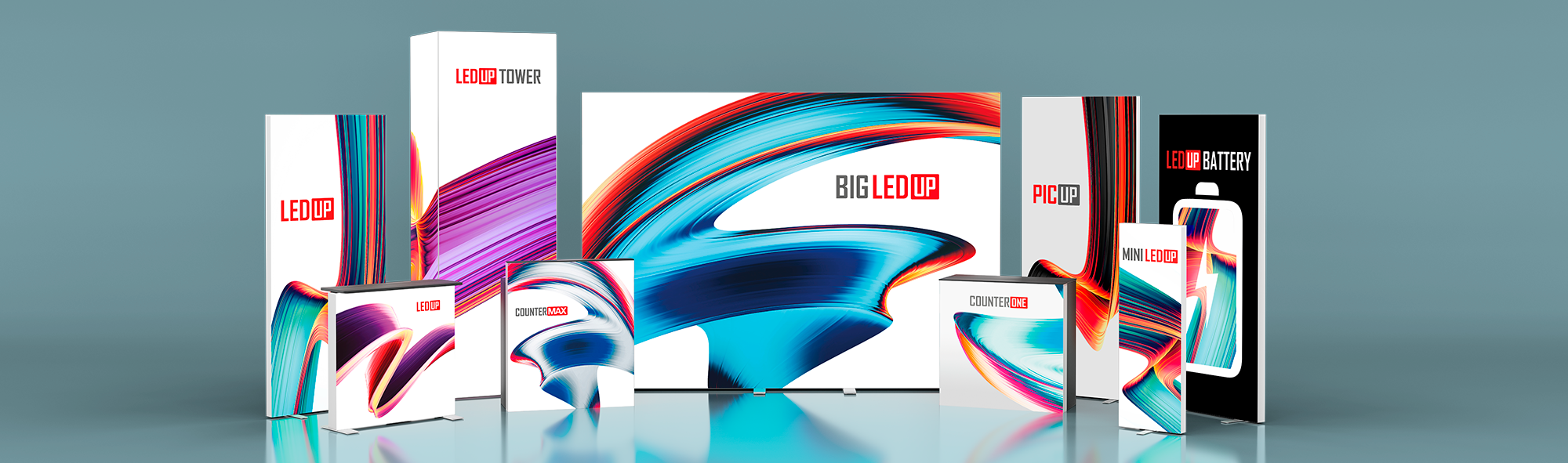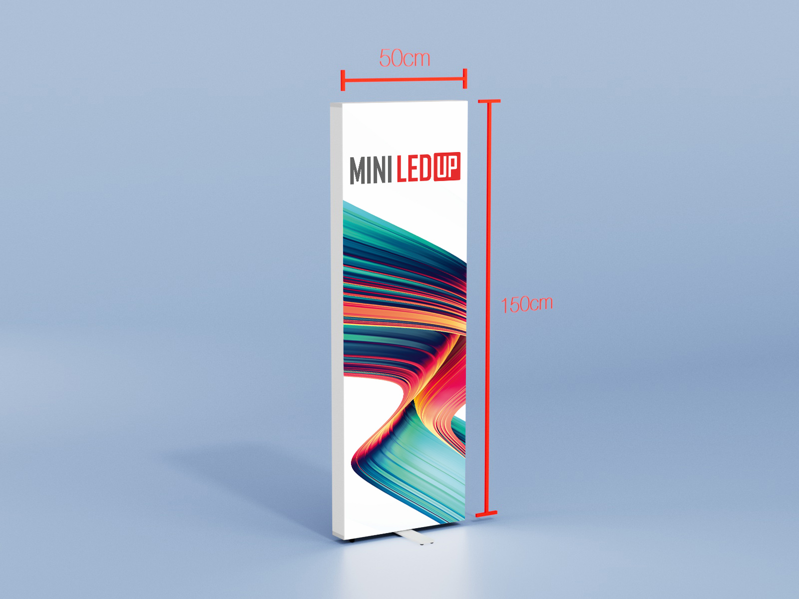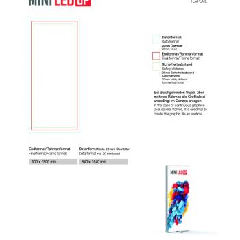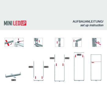 Ein hoher Helligkeitsgrad mit gleichmäßiger Ausleuchtung, silber eloxierte Aluminiumprofile mit einer Tiefe von nur 80 mm und der einfache, werkzeuglose Aufbau dank des innovativen Stecksystems machen den MINI LEDUP® zu einem Champion unter den Leuchtdisplays.