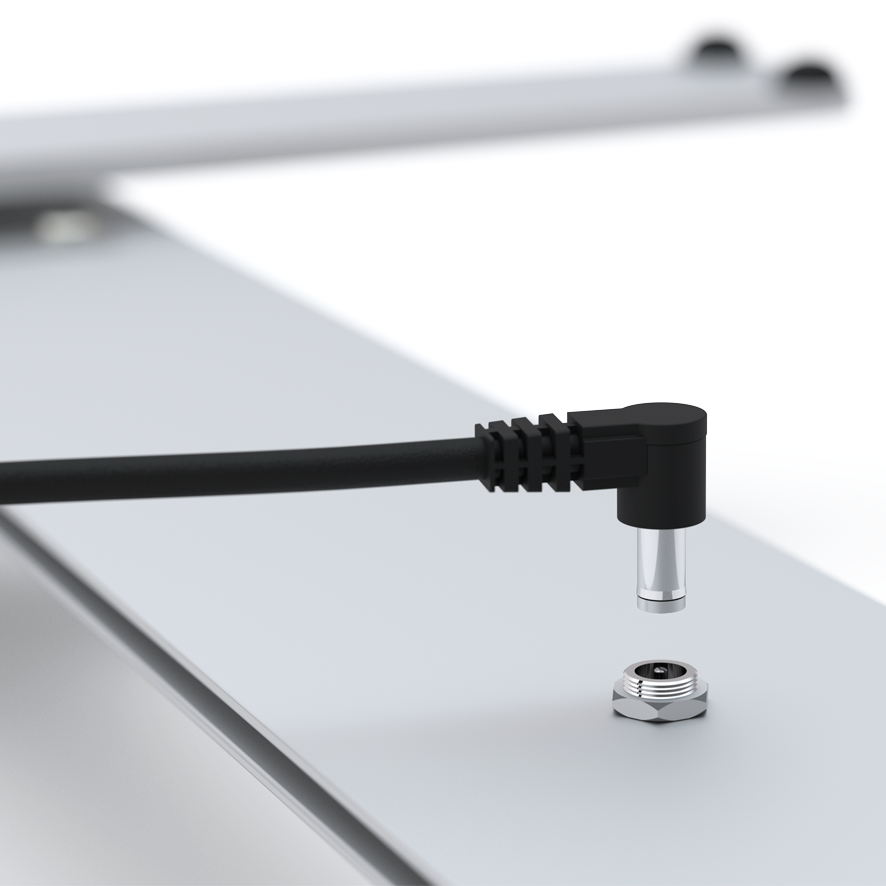 Zudem bedeutet eine innovative Stromverbindung im Inneren des Rahmens, bekannt als Pogopin, dass herkömmliche Kabelverbindungen überflüssig geworden sind. Verbinden Sie einfach die zwei Teile des Rahmens und der Strom ist an – genial!