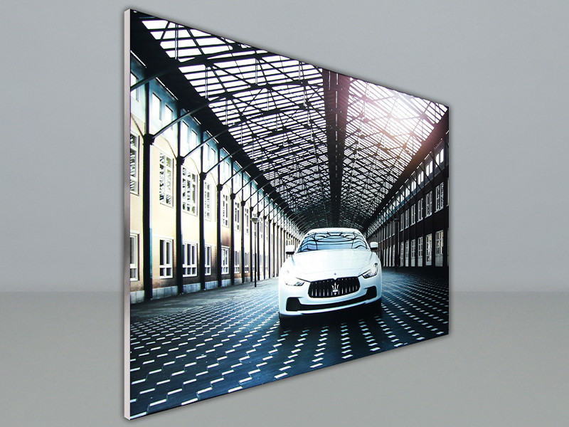 Multi Frame Side Light LED Leuchtkästen können einseitig oder doppelseitig, freistehend, an der Wand montiert oder abgehängt verwendet werden. Die LED-Leuchtkästen arbeiten mit seitlicher Beleuchtung – die LED-Module und die Treiber sind in den gegenüberliegenden Profilen des Rahmens integriert. Die größte Entfernung, die auf diese Weise gleichmäßig ausgeleuchtet werden kann, beträgt 300 cm. Daher können Leuchtkästen mit einer Höhe oder Länge von bis zu 300 cm gebaut werden. Theoretisch ist die Länge/Höhe endlos.