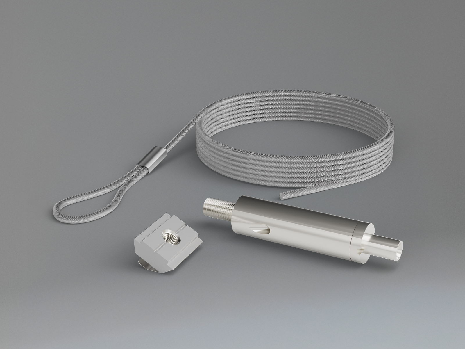 Er verfügt über ein robustes Edelstahlseil mit einer vorgeformten 30-mm-Schlaufe, die eine sichere und zugleich elegante Befestigung ermöglicht.