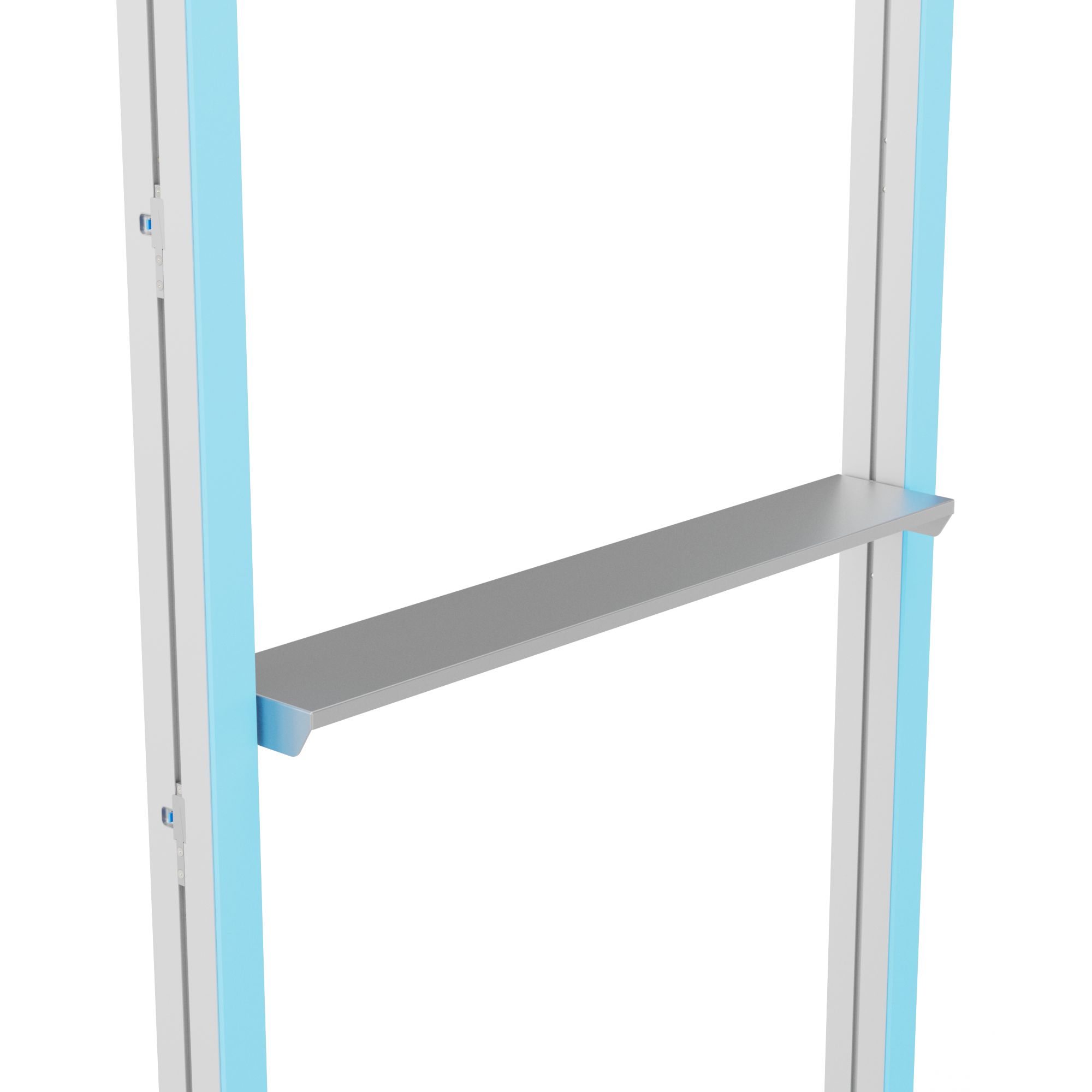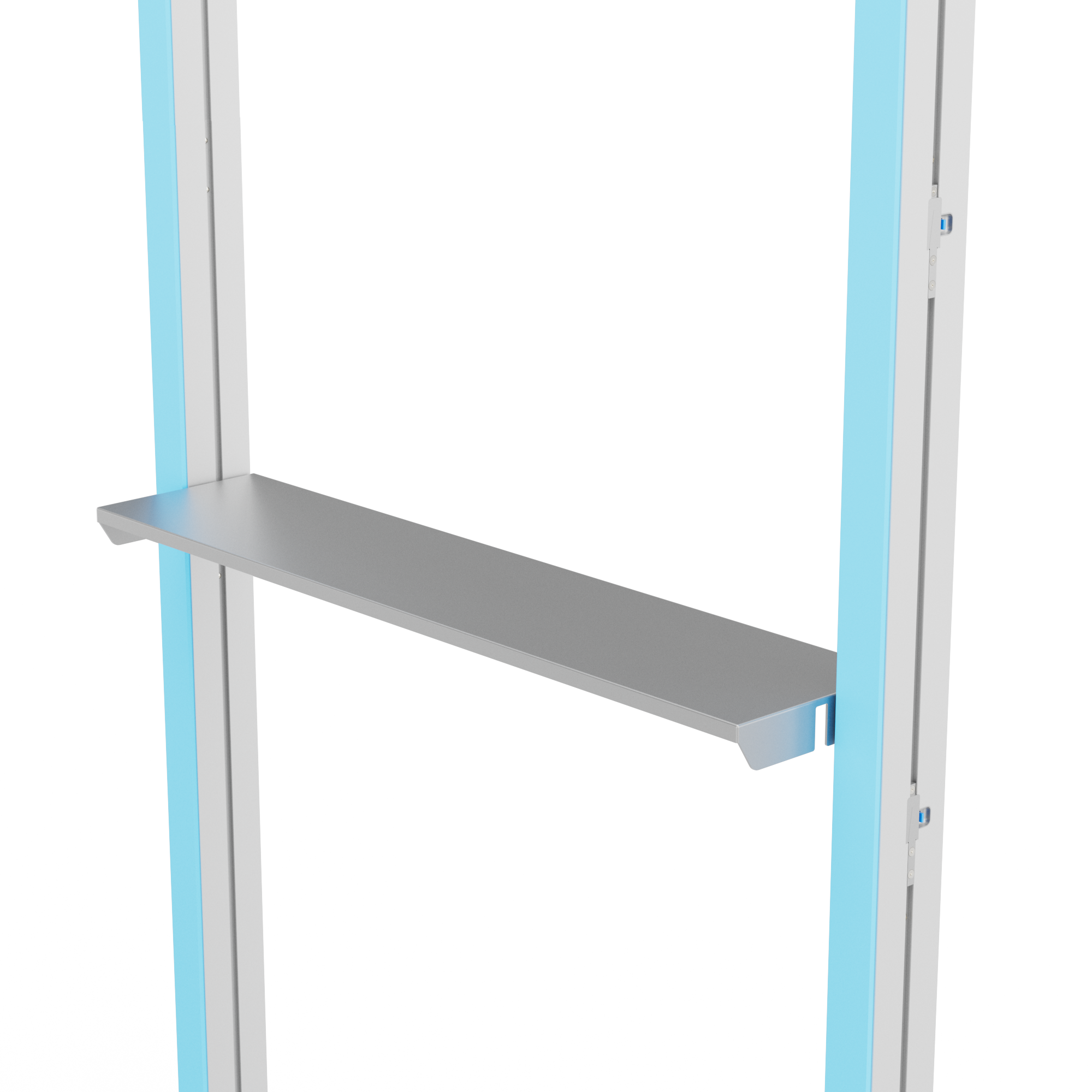 Wie alle LINEUP-Komponenten ist auch das Zubehör Ablage eine einfache, werkzeuglose Montage konzipiert. Es lässt sich über das modulare Stecksystem schnell und sicher an der bestehenden Rahmenstruktur befestigen – ganz ohne Werkzeug oder zusätzliches Equipment.