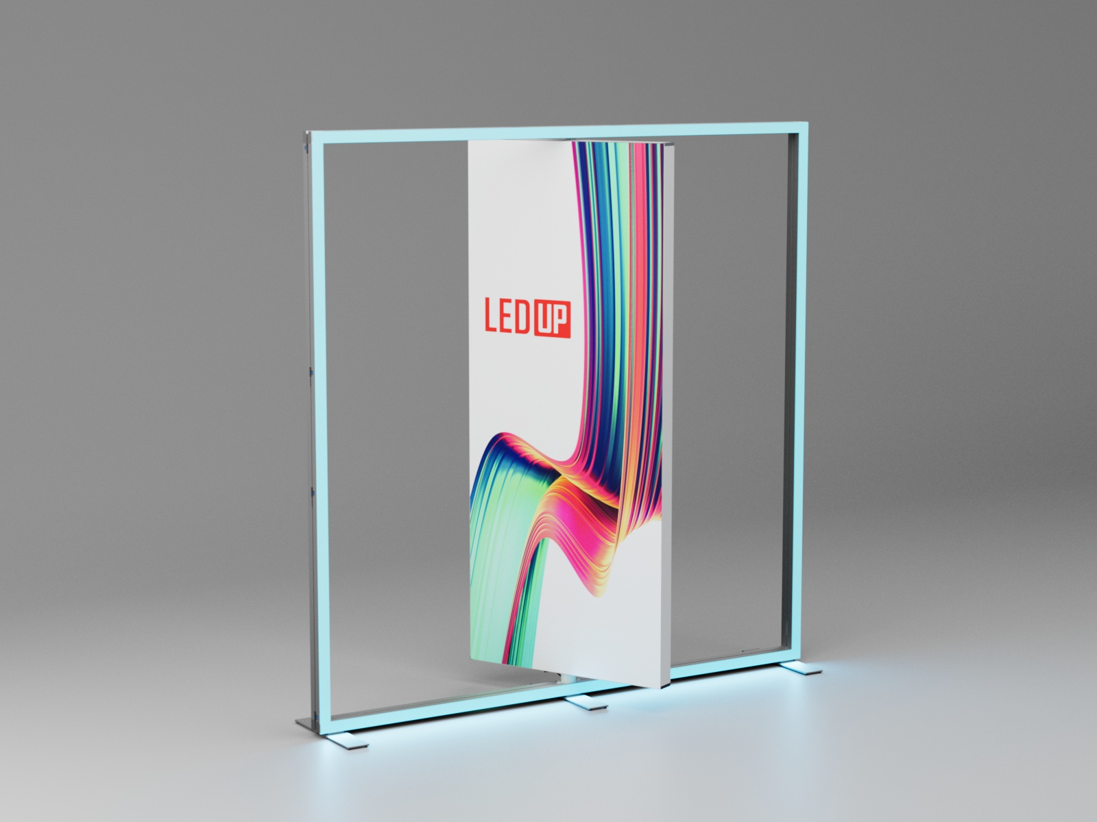 LINEUP Rotation ist die neue, drehbare Erweiterung für das LINEUP-System und sorgt für Bewegung und doppelte Aufmerksamkeit bei Events und Präsentationen. Das beleuchtete Rotationsmodul misst immer 100 cm in der Breite und ist beidseitig mit Stoff bespannbar – perfekt für wechselnde Werbebotschaften oder doppelseitige Designs. Die Höhe des Rotation-Systems passt sich der Gesamthöhe des LINEUP-Systems an: