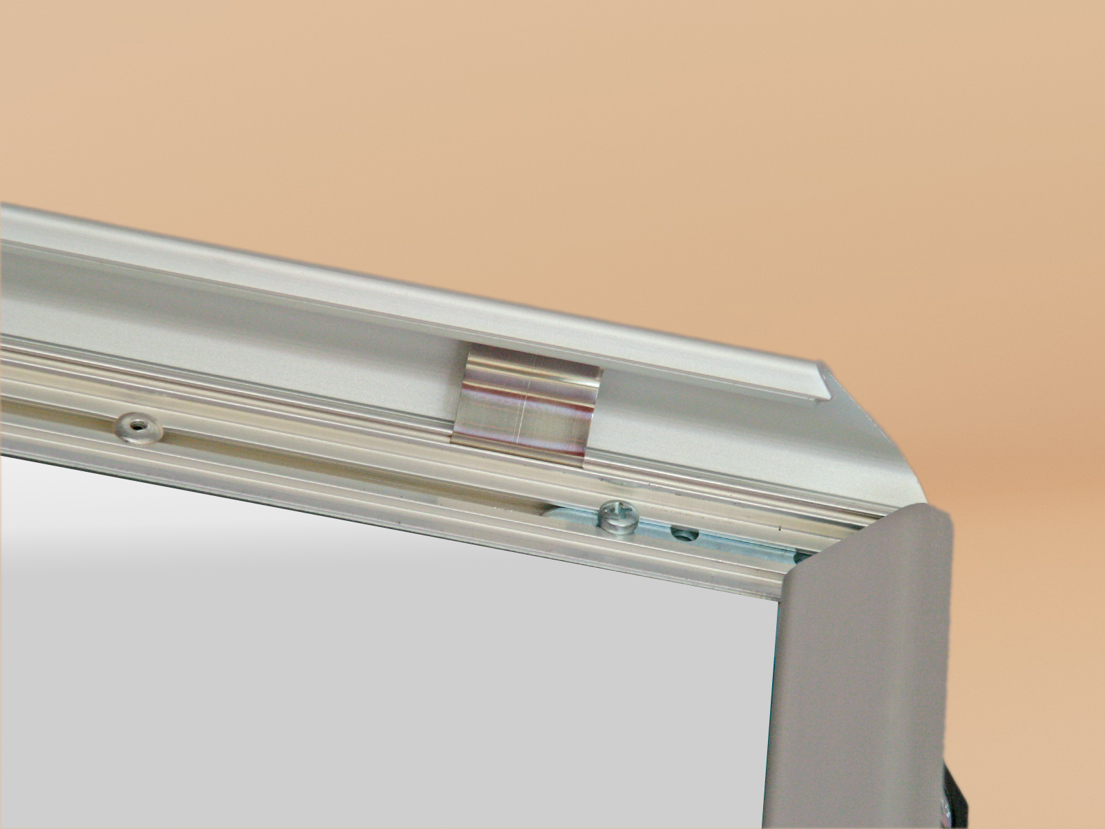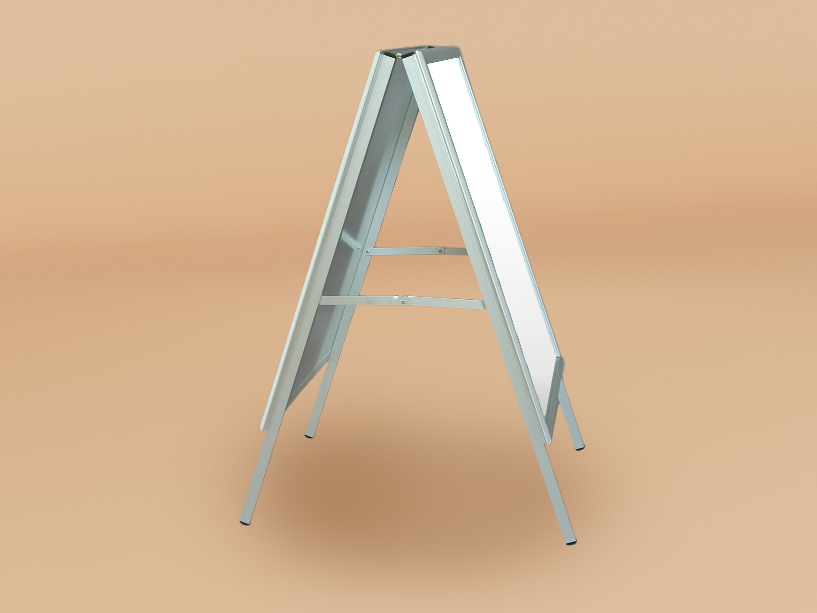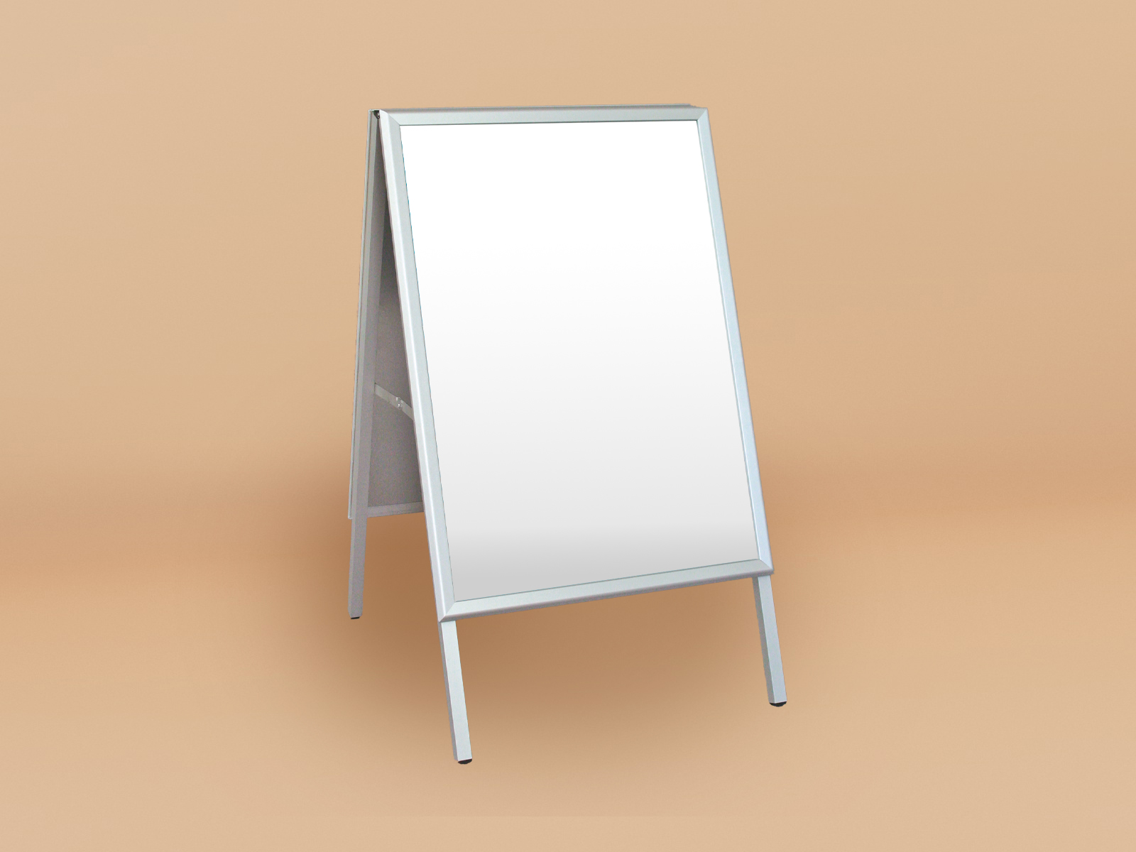A-stand ist aus Aluminium gefertigt und verfügt über Schnapprahmen zum schnellen und einfachen Wechseln der Paneele. Im Lieferumfang sind Antireflex-Schutzfolien enthalten, die das Plakat vor Sonnenlicht schützen.