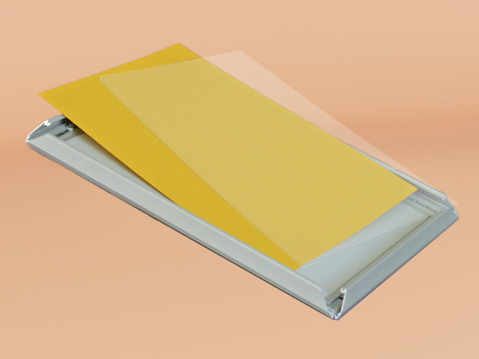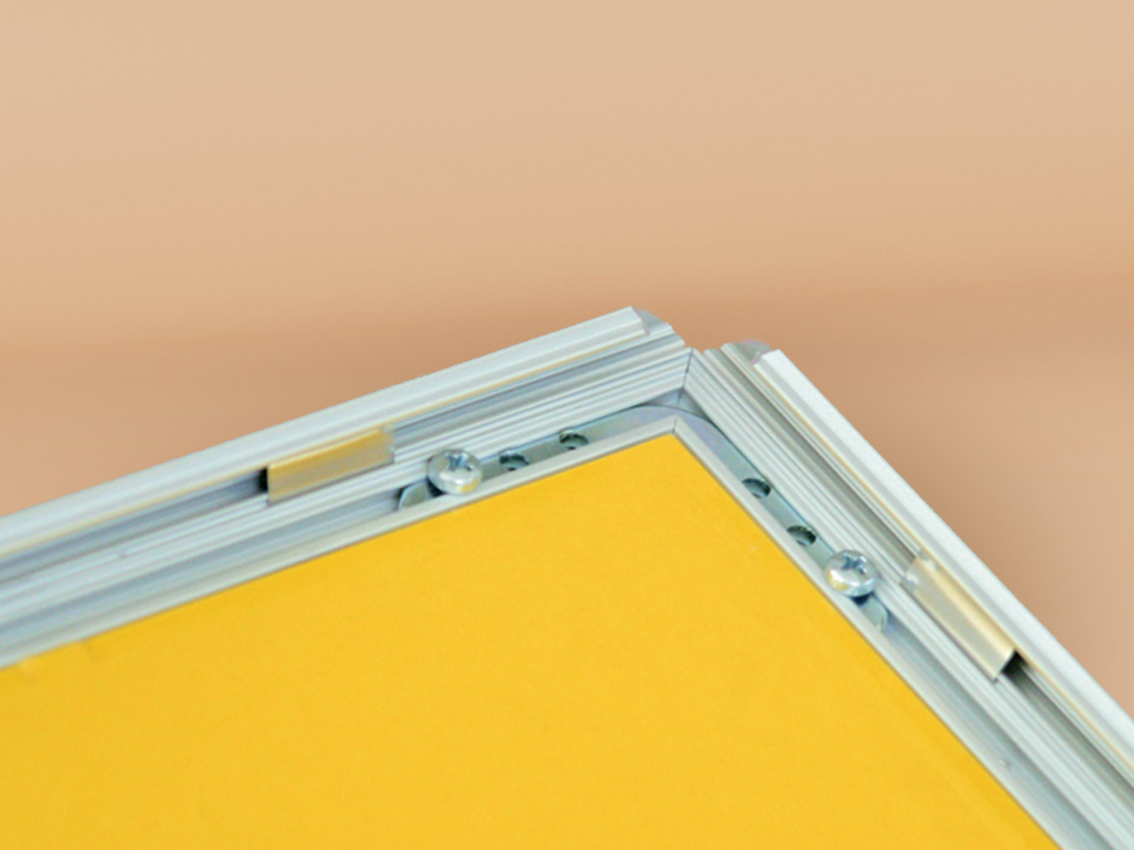 Das Format A0 verfügt über eine Profiltiefe von 33 mm, die Formate A1, A2, A3 und A4 haben eine Profiltiefe von 25 mmRunde Plastikecken sind auf Wunsch ebenfalls erhältlich.
