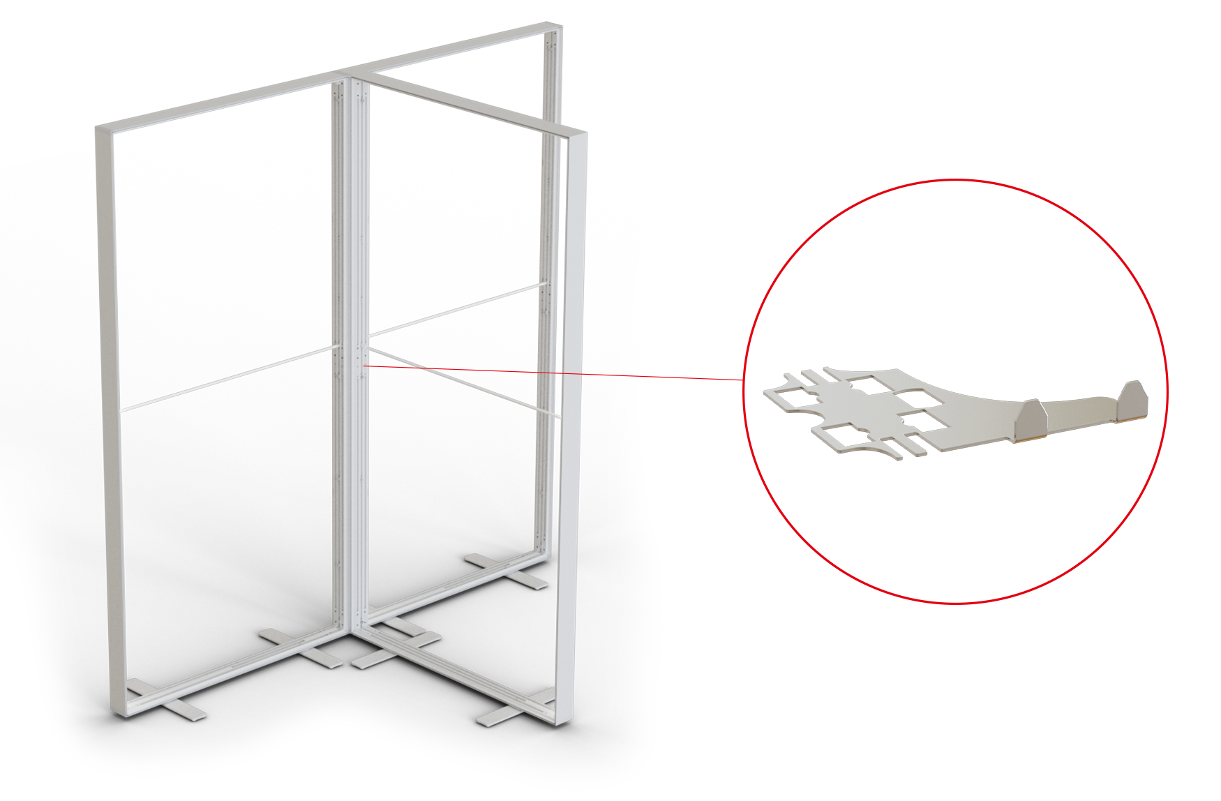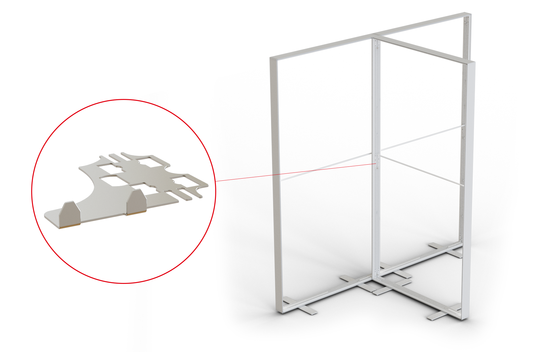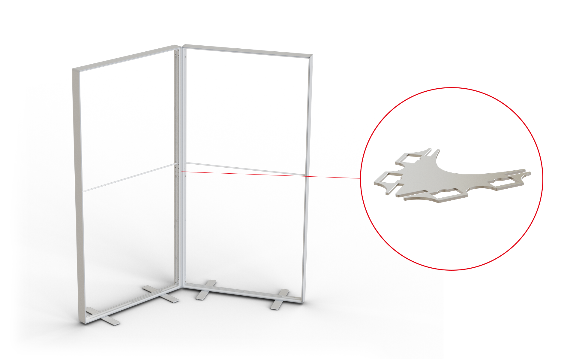 Mit dem 90-Grad-Systemverbinder kann eine stabile Ecklösung geschaffen werden, die das rechte System abdeckt.