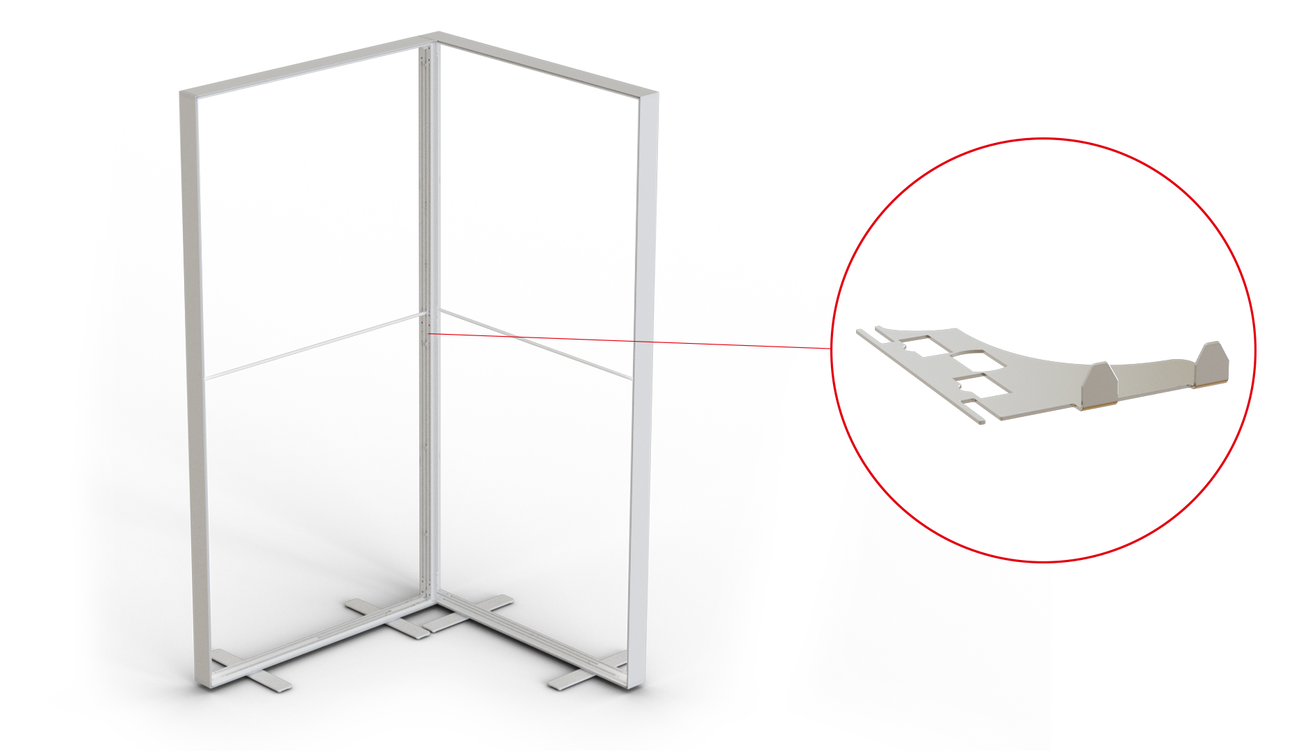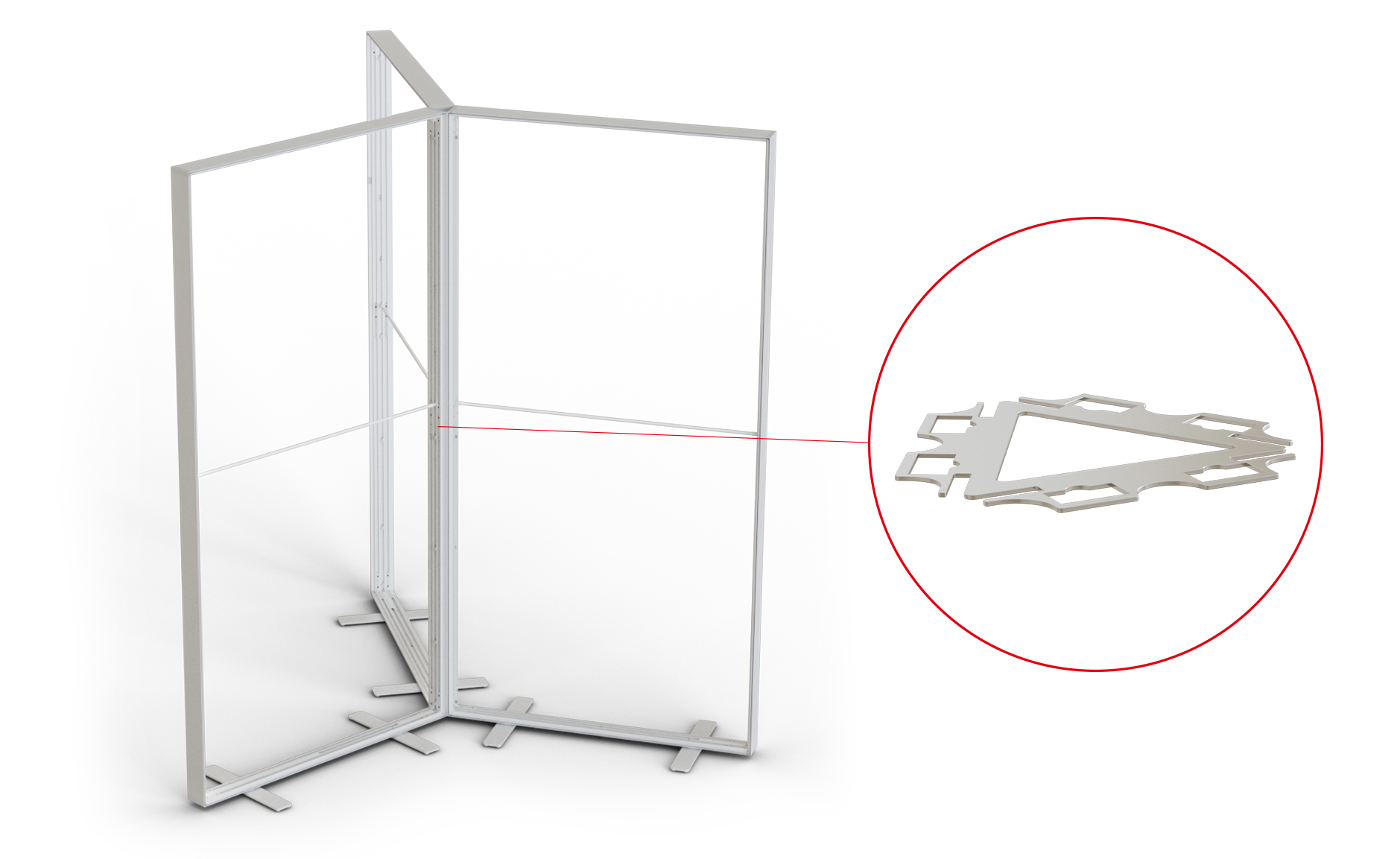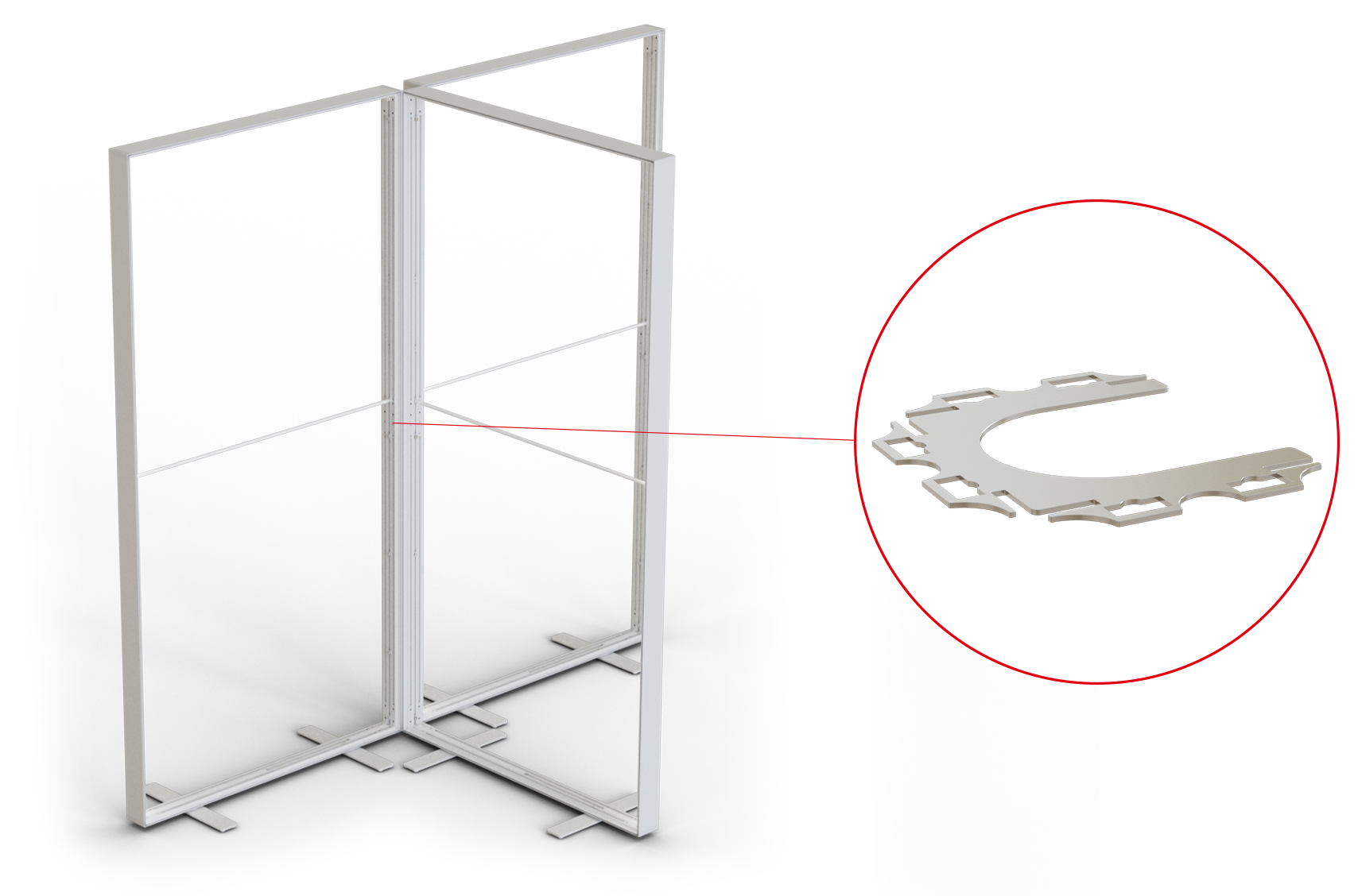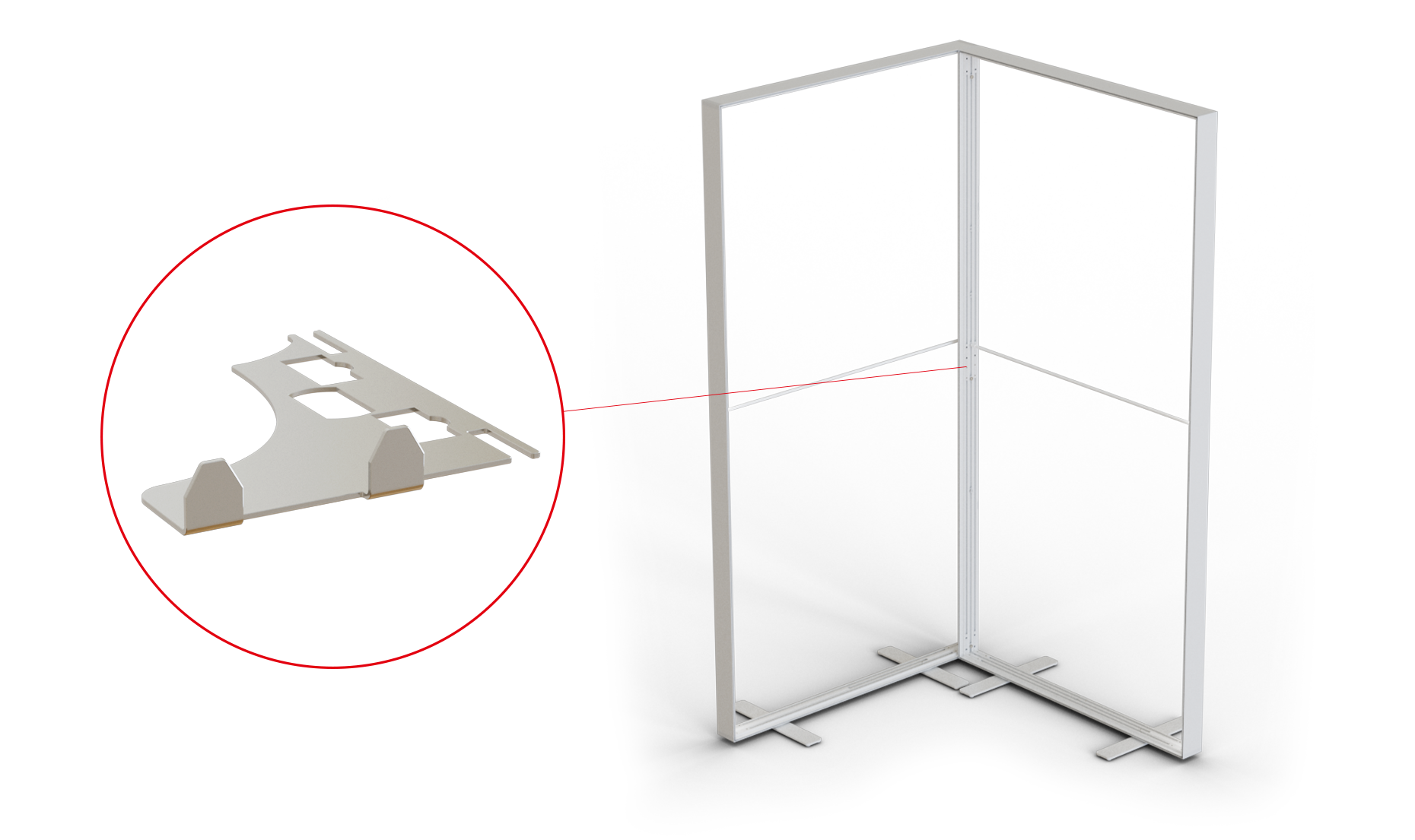 Mit dem 90-Grad-Systemverbinder kann eine stabile Ecklösung geschaffen werden, die das rechte System abdeckt.