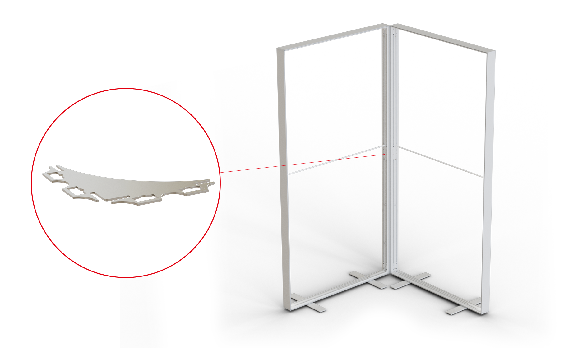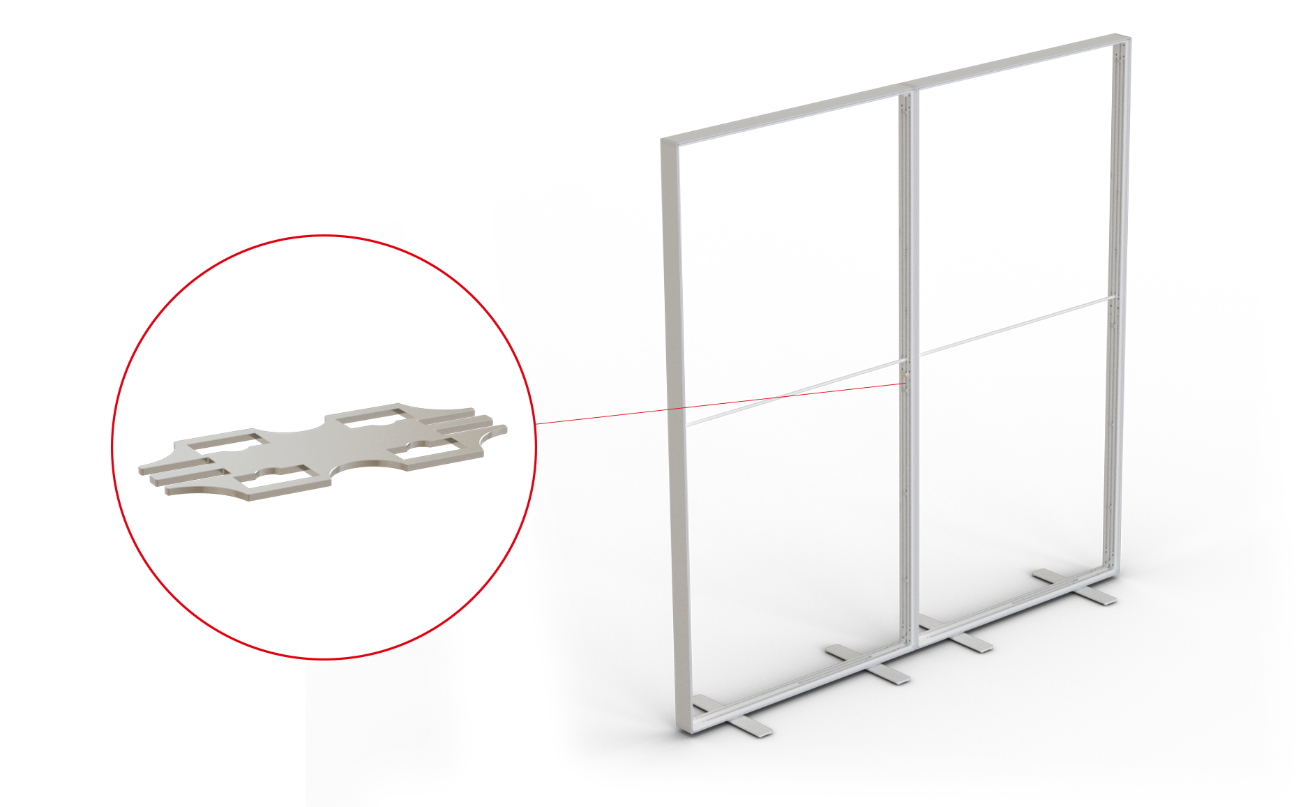 Der gerade Systemverbinder ermöglicht es, mehrere Systeme in kürzester Zeit zu beliebiger Länge und zu geraden Wänden zu verbinden. Der Verbinder wird zwischen den vertikalen Systemkomponenten eingefügt und garantiert eine stabile Verbindung zwischen den Systemen.