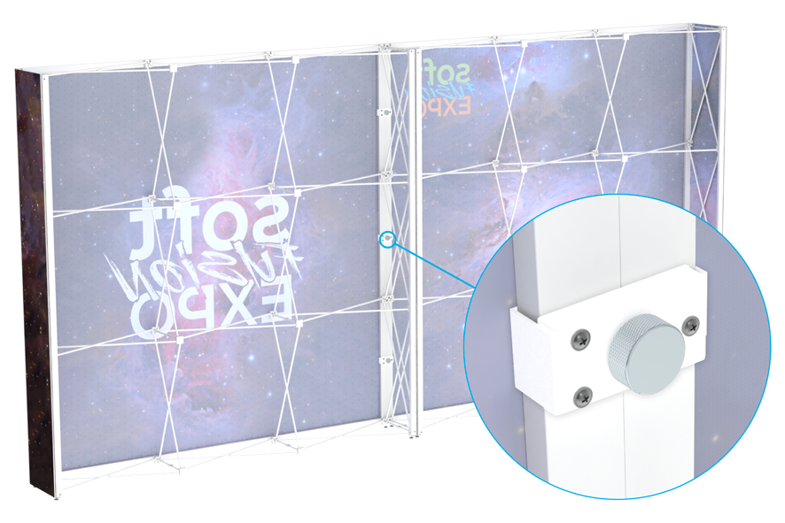 Das Pop-up-System Soft Expo Fusion ist eine schnelle und einfache Möglichkeit, Ihren Showroom oder Messestand ansprechend zu gestalten. Es ist die perfekte Pop-up-Lösung für Messen, Showroom-Anwendungen, Präsentationen, Promotionen und Events.